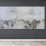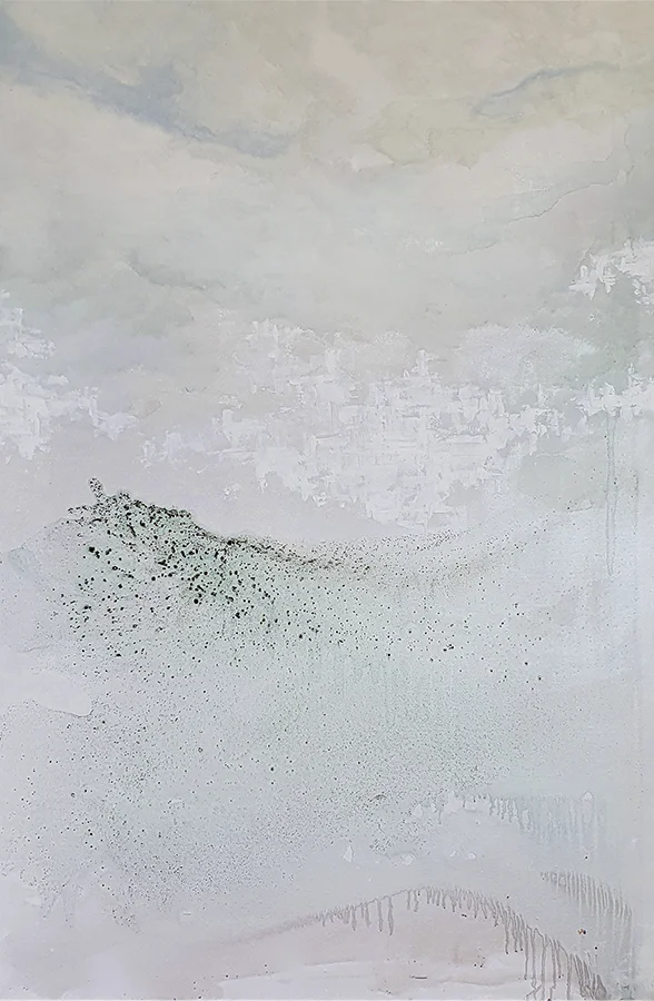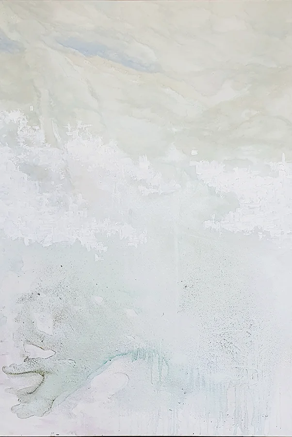 Continuamente intervengo, mediante el chorreo o el trazo amplio y pinceladas dirigidas, configuro formas que se alojan entre curvas y espacios de color, siempre controlando el curso expansivo de la mancha y su interacción tonal. La apropiación equilibrada del espacio y el ritmo visual que están presentes, dan cuenta que esta tensión se desarrolla en plena armonía.