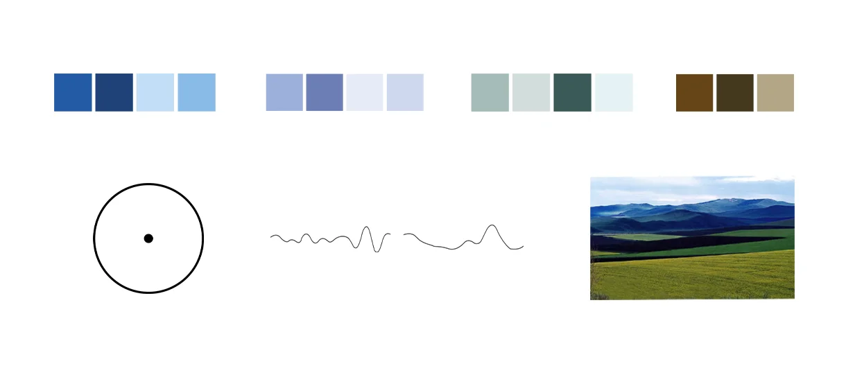 La paleta cromática abarca los azules, violetas, verdes y colores tierra. El objetivo es que se mantenga dominado al área posterior del cerebro, la cual responde al estado de sueño profundo. Las formas circulares contienen todo dentro de su interior, aporta integridad y genera una sensación de interconexión. Las ondas Theta y Delta se alcanzan cuando se está en un estado de calma profunda. Las llanuras generan el enlace con la Biofilia, gatillan estados de confort, confianza, concentración y serenidad.