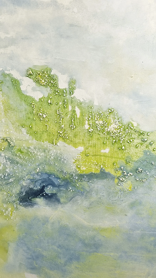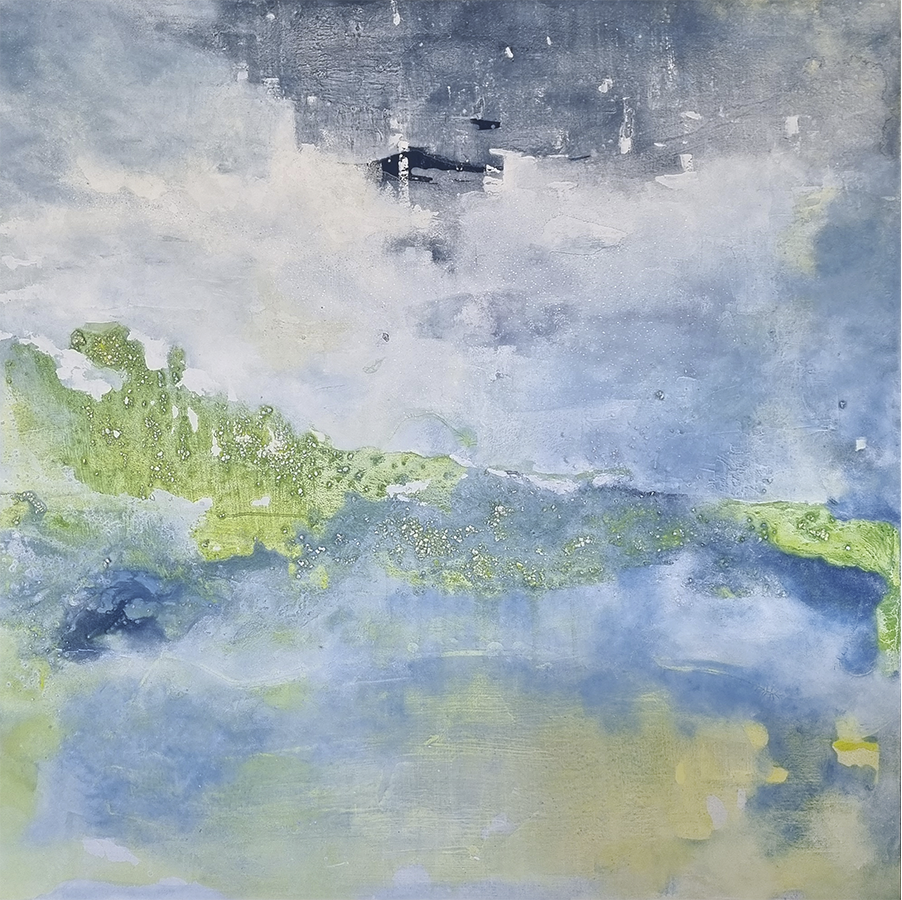 Este horizonte limita lo terrenal de lo divino, lo viable de lo utópico, la realidad del sueño. No es una línea recta, fluye para no ser constante. La serie fue inspirada en mi viaje a Bali y Hawaii, lugares mágicos, llenos de buena energía. Me encontré con paisajes armónicos y en equilibrio, en donde se ven en tensión perfecta la tierra y el cielo. Una paleta cromática que sugiere descanso visual. Y llega un punto en el que te relajas, empiezas a estar en sintonía con la energía del lugar, te sumerges en la naturaleza. Esos lugares están vivos, se puede sentir como respiran. La técnica que utilicé favorece un recorrido visual fluido y sutil. Logrando una obra en donde los elementos que la conforman se hacen cargo en su totalidad de la composición. Respirar y sentirse uno con lo que se está observando. Un paisaje en equilibrio, un horizonte que genera paz, calma y serenidad.