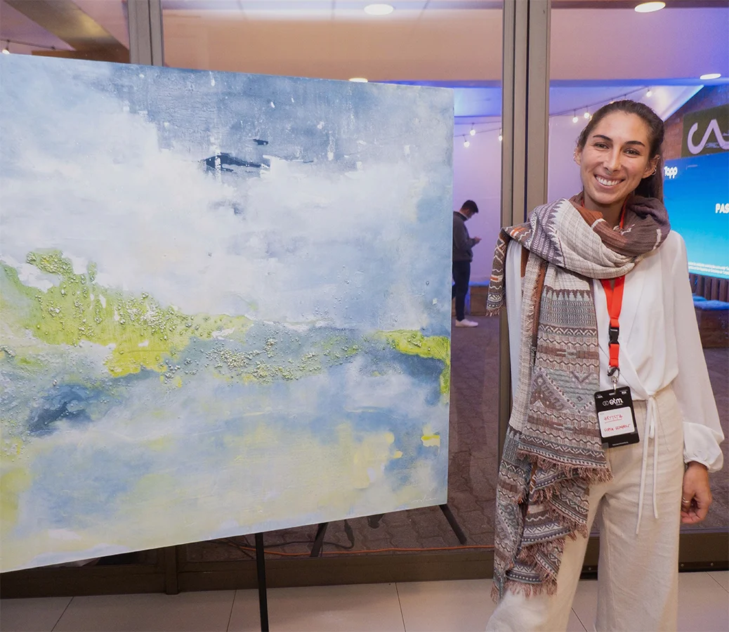 Expuse mis cuadros y estuve pintando en vivo en el evento.