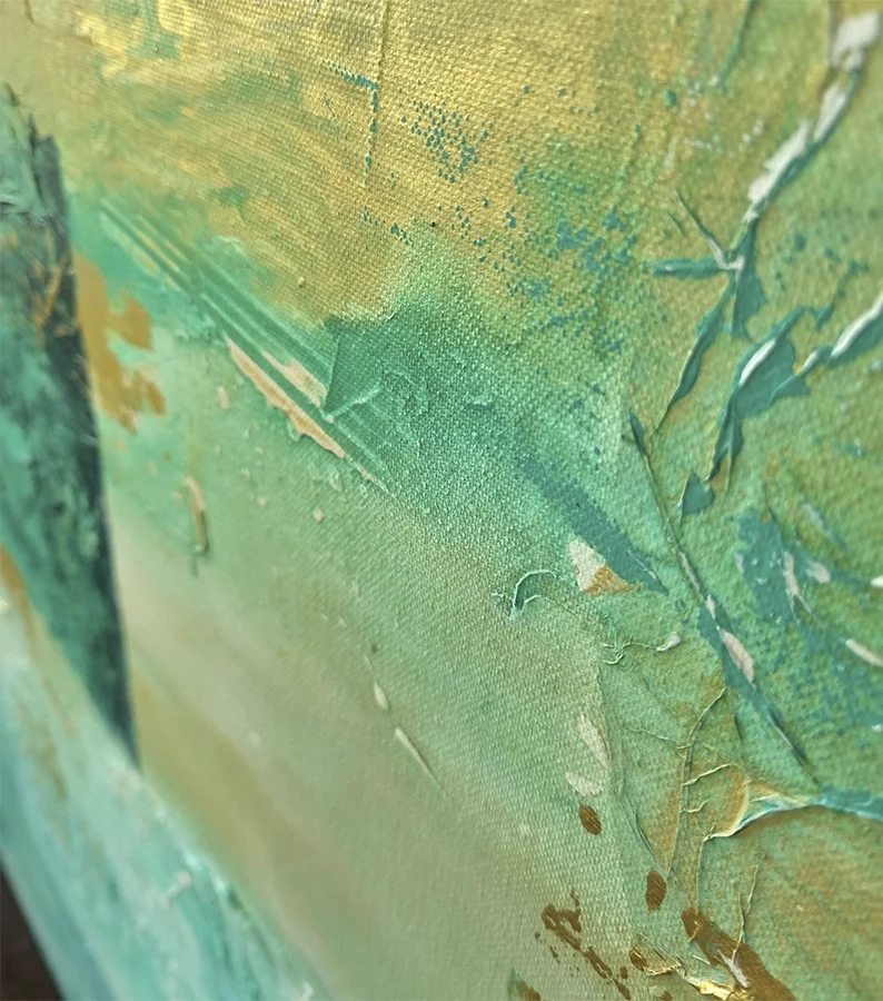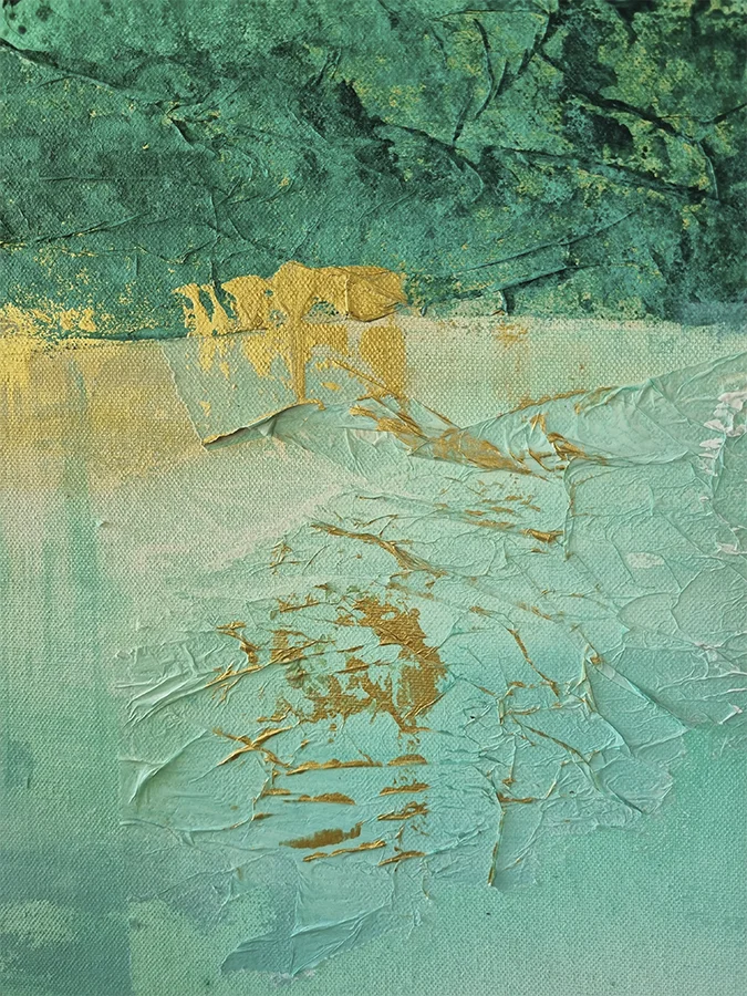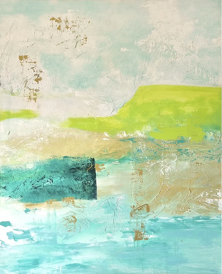La técnica que utilicé favorece un recorrido visual fluido y sutil. Logrando una obra en donde los elementos que la conforman se hacen cargo en su totalidad de la composición. Respirar y sentirse uno con lo que se está observando. Un paisaje en equilibrio, un horizonte que genera paz, calma y serenidad.