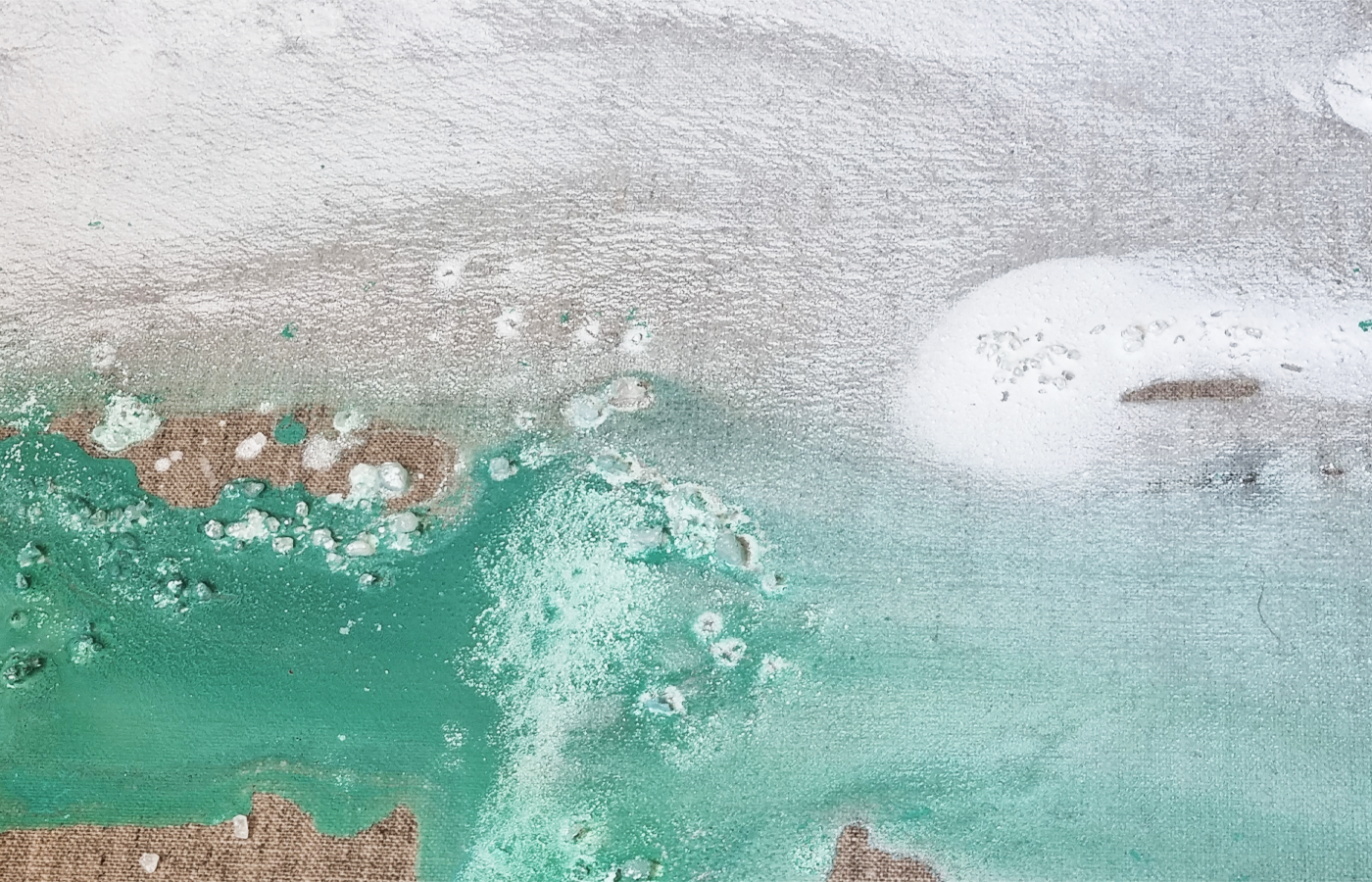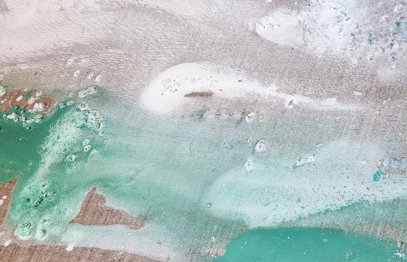 Este horizonte limita lo terrenal de lo divino, lo viable de lo utópico, la realidad del sueño. No es una línea recta, fluye para no ser constante. La serie fue inspirada en mi viaje a Bali y Hawaii, lugares mágicos, llenos de buena energía. Me encontré con paisajes armónicos y en equilibrio, en donde se ven en tensión perfecta la tierra y el cielo. Una paleta cromática que sugiere descanso visual. Y llega un punto en el que te relajas, empiezas a estar en sintonía con la energía del lugar, te sumerges en la naturaleza. Esos lugares están vivos, se puede sentir como respiran. La técnica que utilicé favorece un recorrido visual fluido y sutil. Logrando una obra en donde los elementos que la conforman se hacen cargo en su totalidad de la composición. Respirar y sentirse uno con lo que se está observando. Un paisaje en equilibrio, un horizonte que genera paz, calma y serenidad.