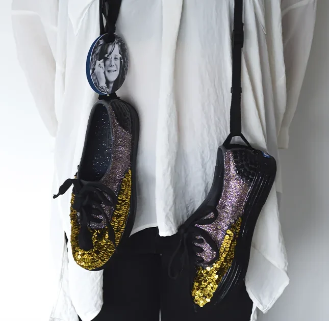 Se llevan colgadas simulando los collares de gran tamaño utilizados en los 60’s 70´s, al igual que los brillantes de múltiples colores que caracterizaban a los hippies