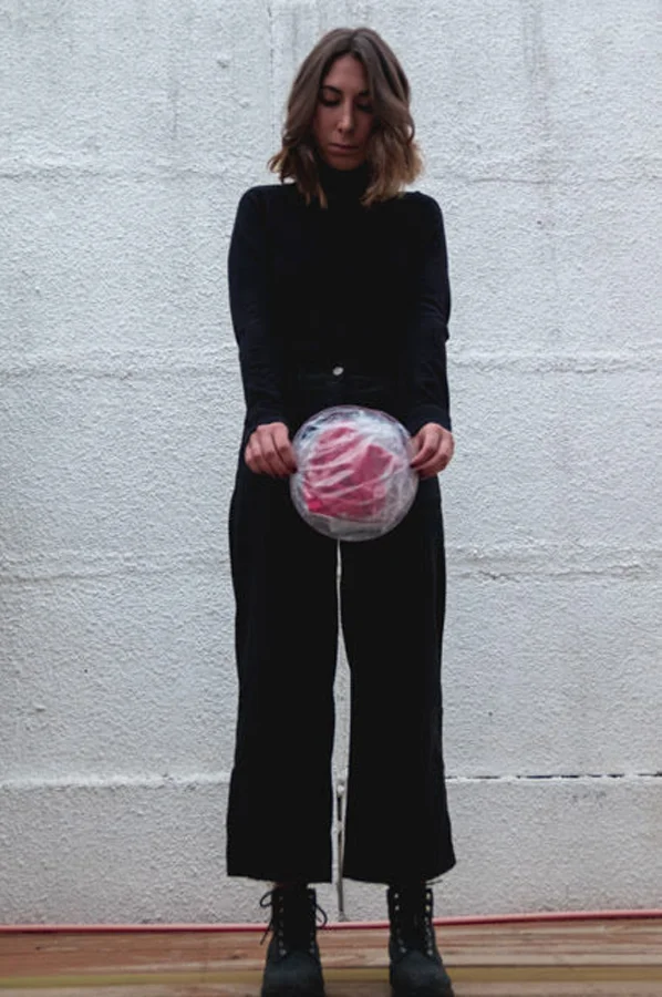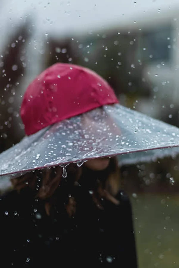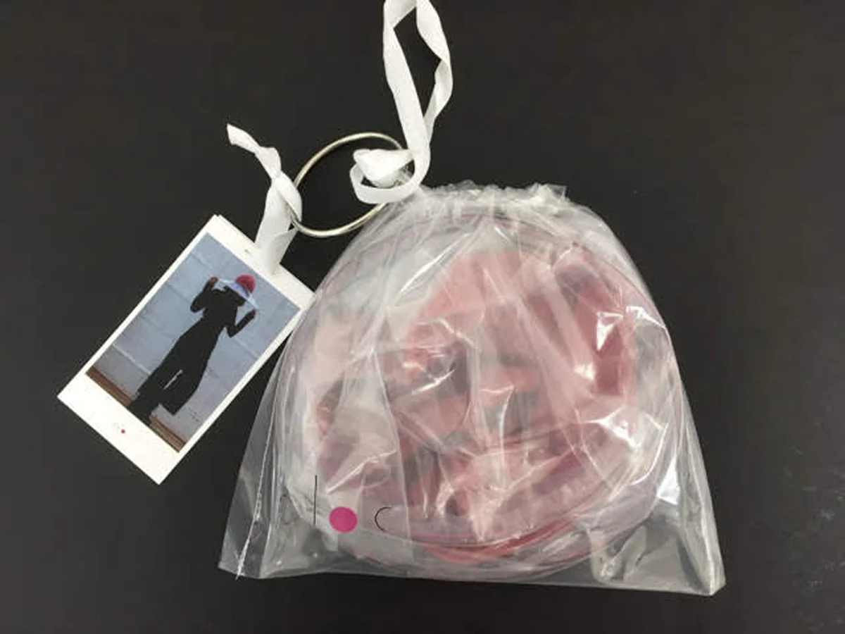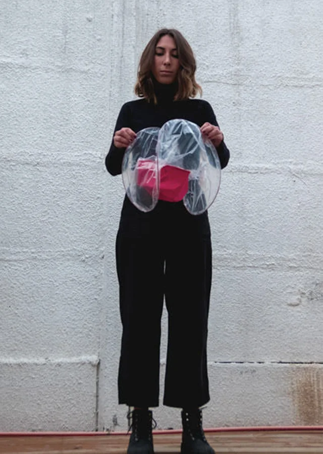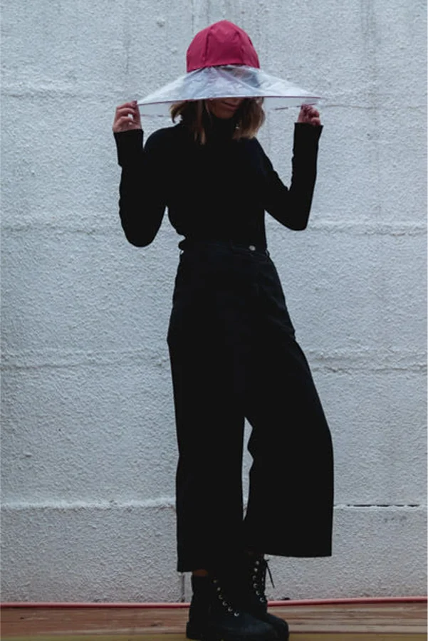 Sombrero/paraguas creado a partir de plásticos recolectados de la playa chilena