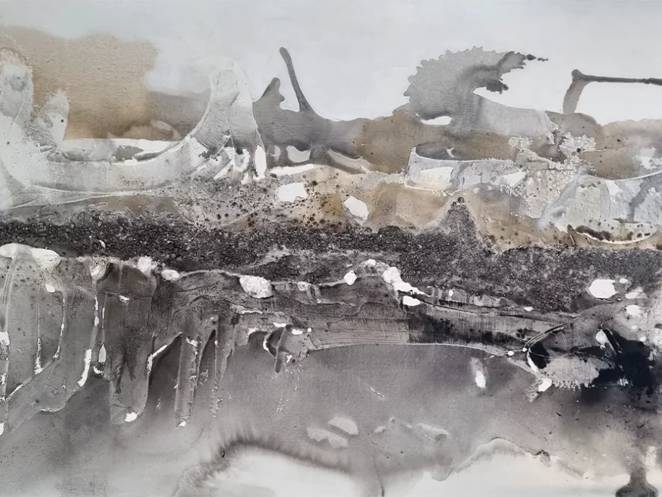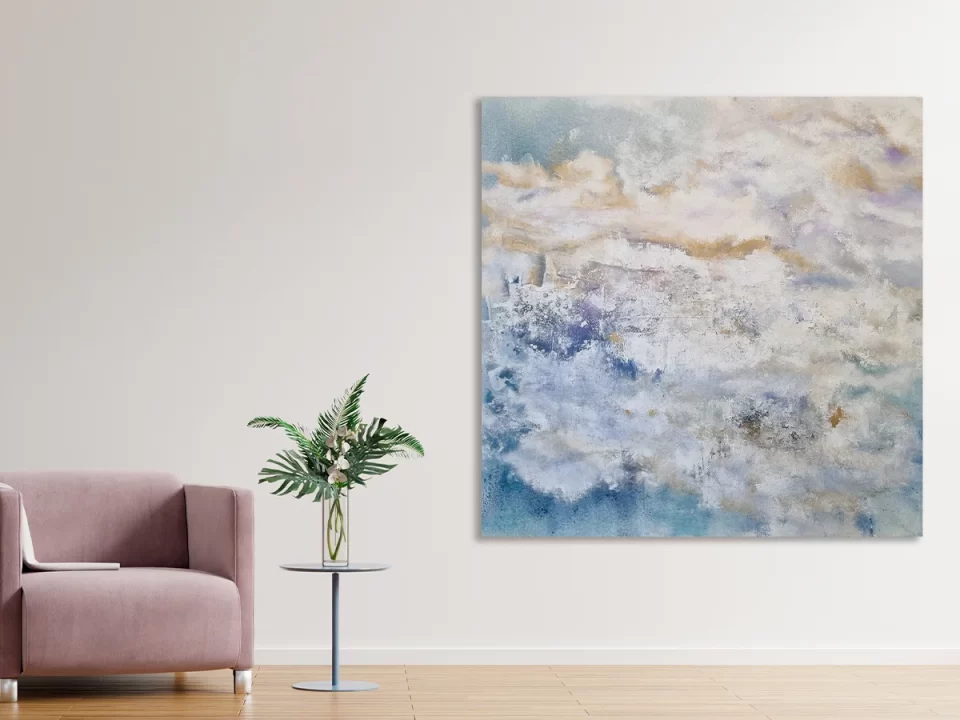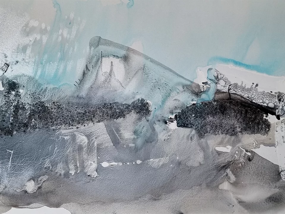 La técnica que utilicé favorece un recorrido visual fluido y sutil. Logrando una obra en donde los elementos que la conforman se hacen cargo en su totalidad de la composición. Respirar y sentirse uno con lo que se está observando. Un paisaje en equilibrio, un horizonte que