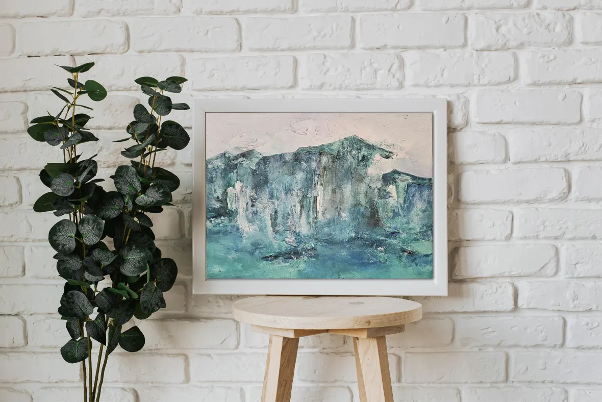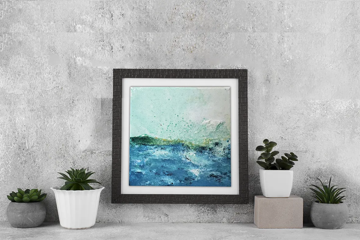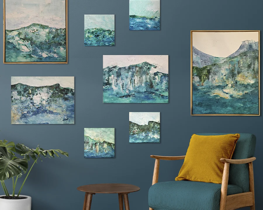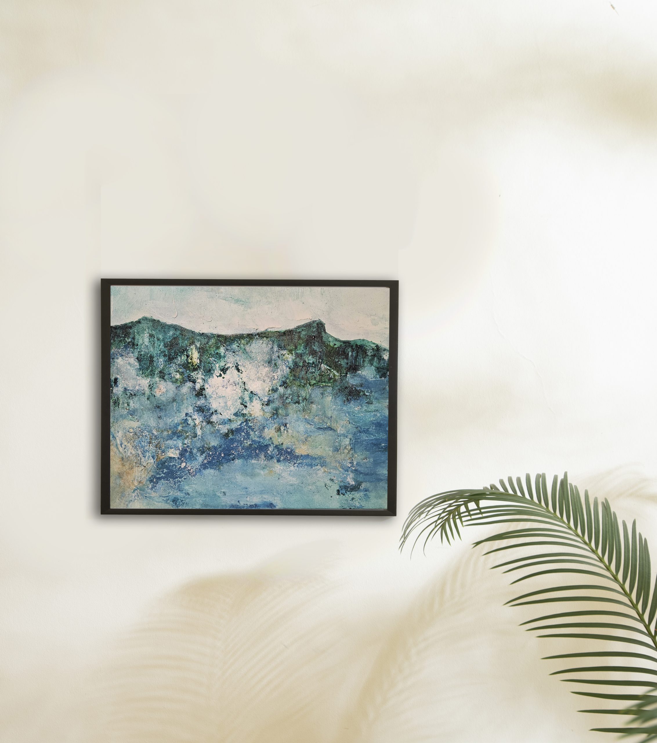 Los colores azules tienen un efecto calmante en el cuerpo. Esta obra ayuda a crear ambientes serenos, espacios naturales y acogedores.