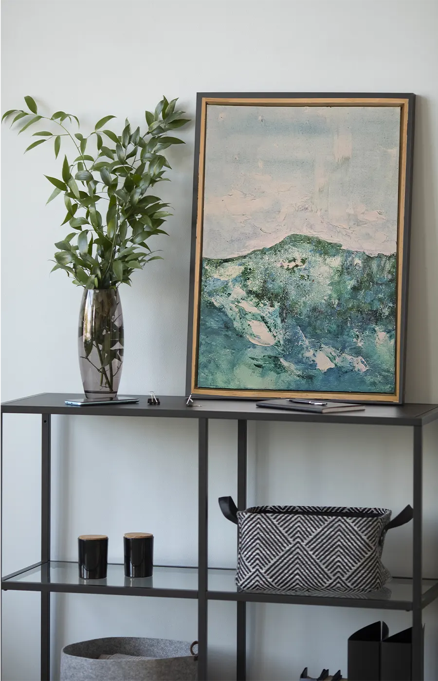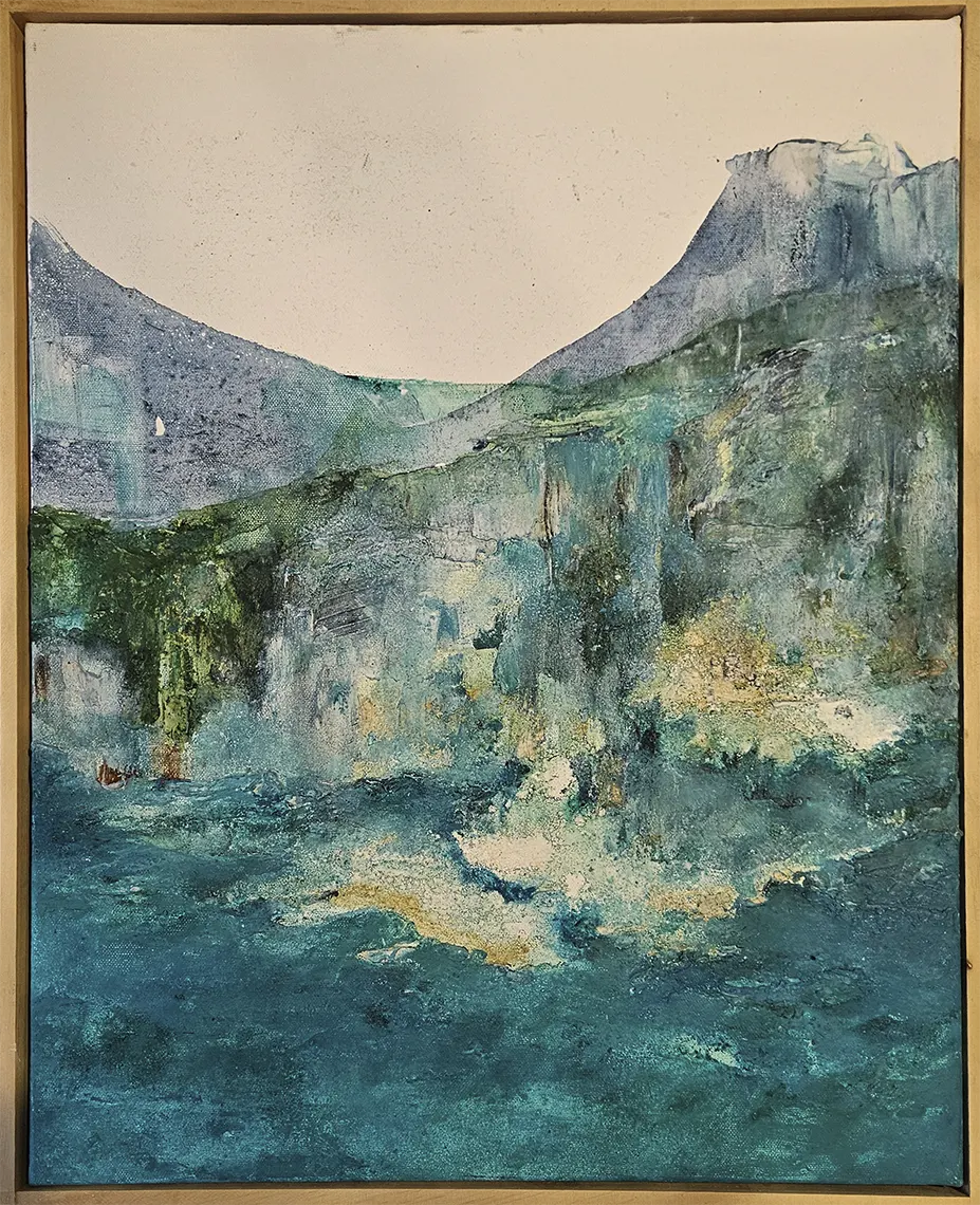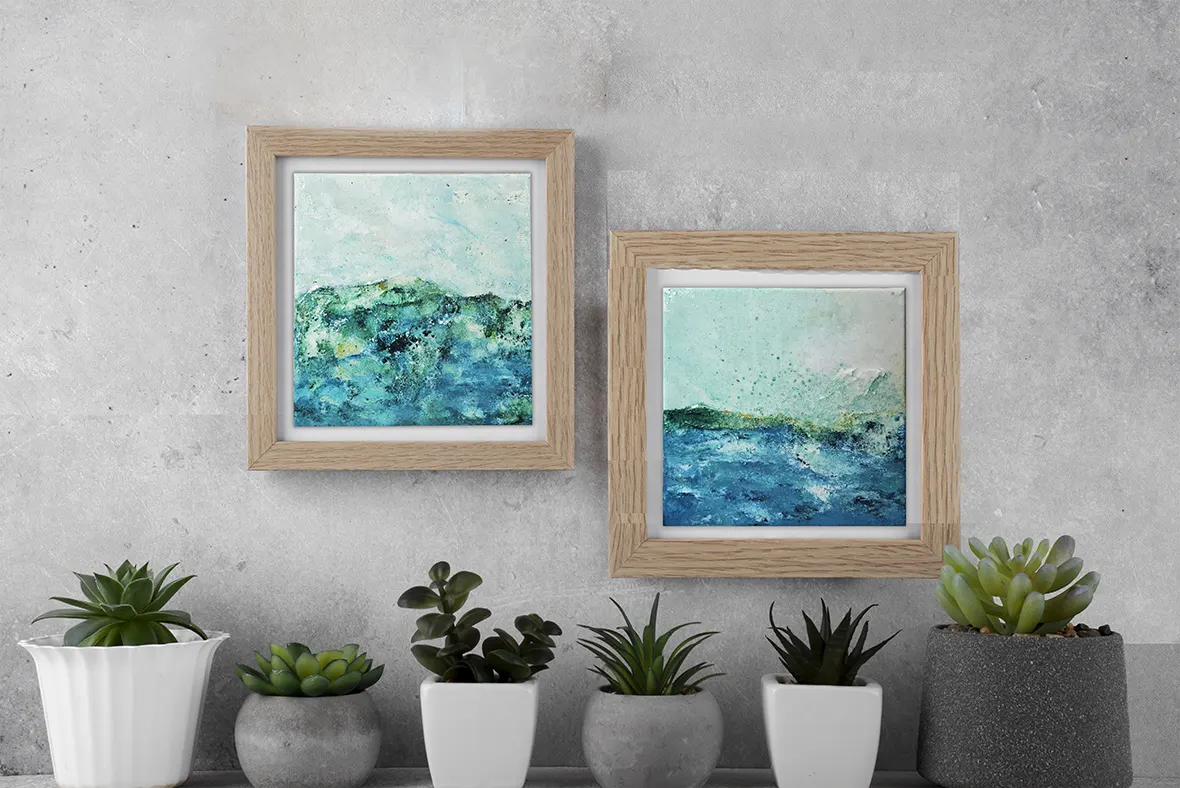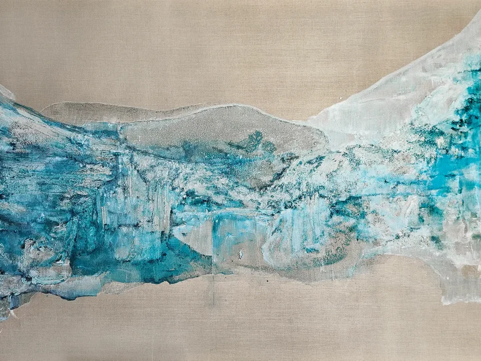 Los colores azules tienen un efecto calmante en el cuerpo. Esta obra ayuda a crear ambientes serenos, espacios naturales y acogedores.
